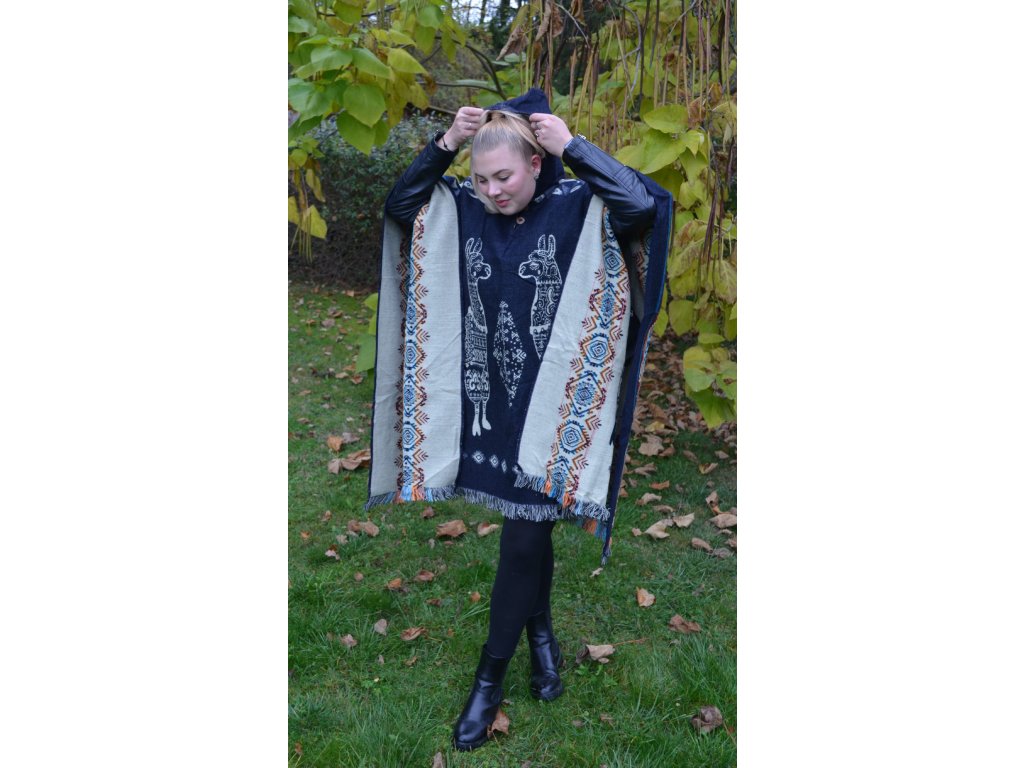 Toto originální pončo Vás zahřeje, ozdobí a bez pochyby budete středem pozornosti. Podívejte se, jak vypadá zepředu a zezadu.
